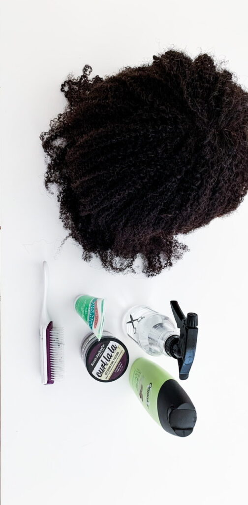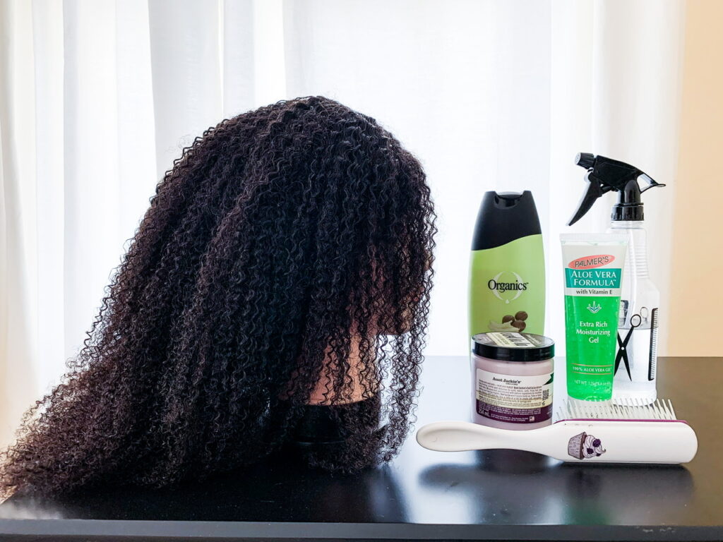 Since I’m a wig newbie, I made some grave mistakes when I first started working with the wig. I dry-brushed it, I barely conditioned it, I washed it in hot water and I barely glanced at the instructions in the wig box. Lesson learned. Now, I’m a lot more careful. I wash it with the Organics Shea Butter Shampoo, I condition it with the Elvive Extraordinary Oil Nourishing Conditioner, I moisturise it with Aunt Jackie’s Curl la la curl custard (only use this for wigs, it does nothing for your natural hair) and I define the curls with Aloe Vera gel. I use a detangling brush while the hair is wet to get rid of any knots and I let the hair dry on a mannequin before wearing it.