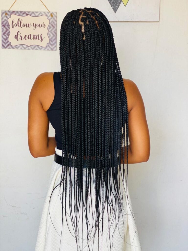 The salon responsible for these wonderful braids is Be.liev_it (@be.liev_it on Instagram, +266 59878251) and the hair stylist’s name is Thato Tanki. She’s professional and her prices are reasonable, especially considering how talented she is. The braids took just a little over 3 hours to complete and I was absolutely shocked at her proficiency. They really came in handy while I was on my trip because not only do they require no manipulation, they also kept me cool. They still look very fresh and I’m tempted to throw some of my beloved usual protective styles on the bench in order to keep doing braids for some time.