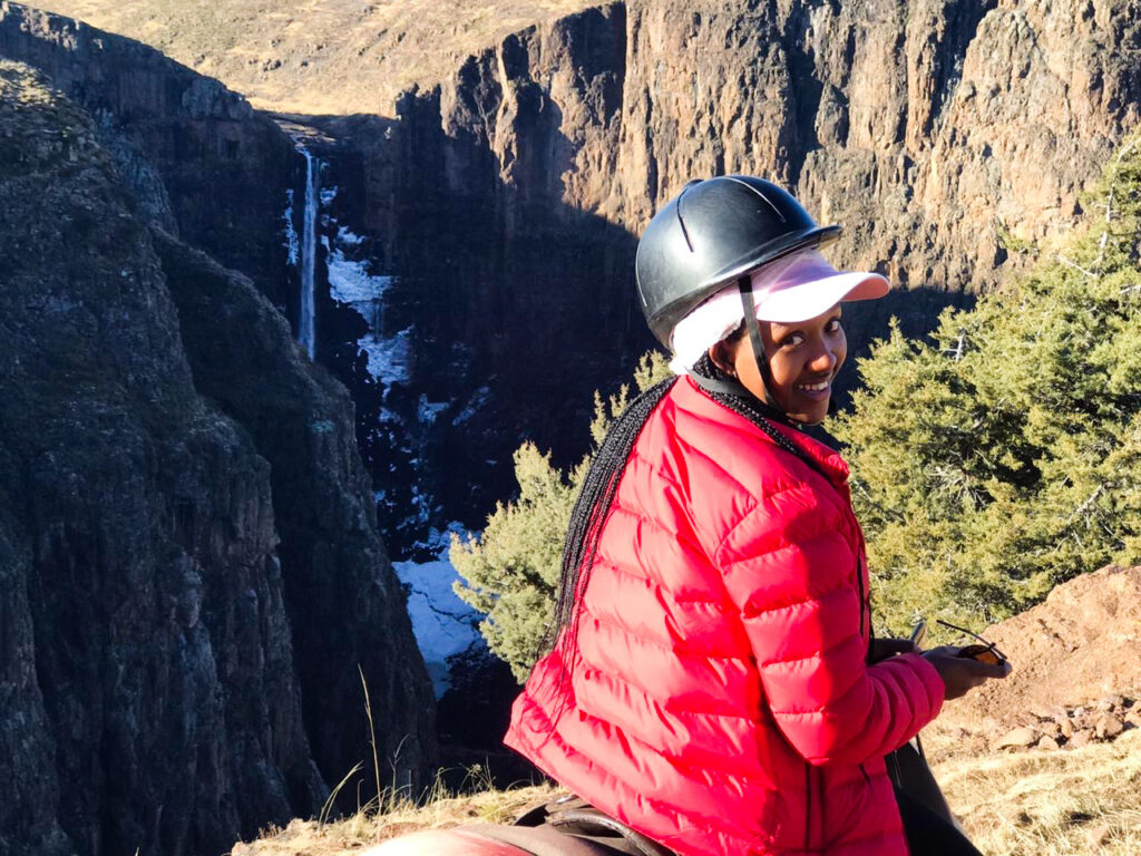 - On the second day, we took a horse ride to the famous Maletsunyane Falls. The gorgeous waterfall was surrounded by ice but it was still worth admiring. It hosts the longest commercial abseil in the world, unfortunately because of COVID-19, they’ve suspended the abseil for now. Next time!